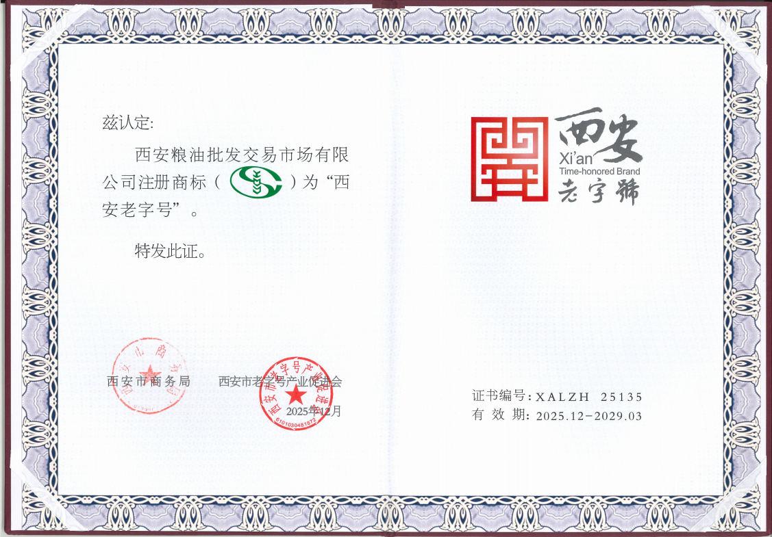 近日,西安市商務局正式公布第三批“西安老字號”認定名單,西安糧油批發(fā)交易市場憑借深厚的文化積淀和卓越的行業(yè)影響力,成功入選,被授予“西安老字號”榮譽稱號。這一殊榮不僅是對市場三十年來堅守品質(zhì)、服務民生的充分肯定,也標志著其品牌價值與文化內(nèi)涵邁上了新臺階。